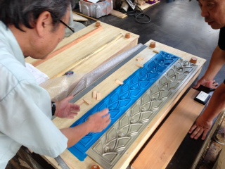 日本最古参の伝統を誇る三越百貨店。その新館壁面を飾る鋳物装飾パネルの修復をさせて頂きました。鋳物原型は、鋳物の街、川口市でも屈指の技術を持つ木型師が担当、打合せにも熱がこもります。丁寧に一つ一つ作り上げ、ノークレームで納品させて頂きました。