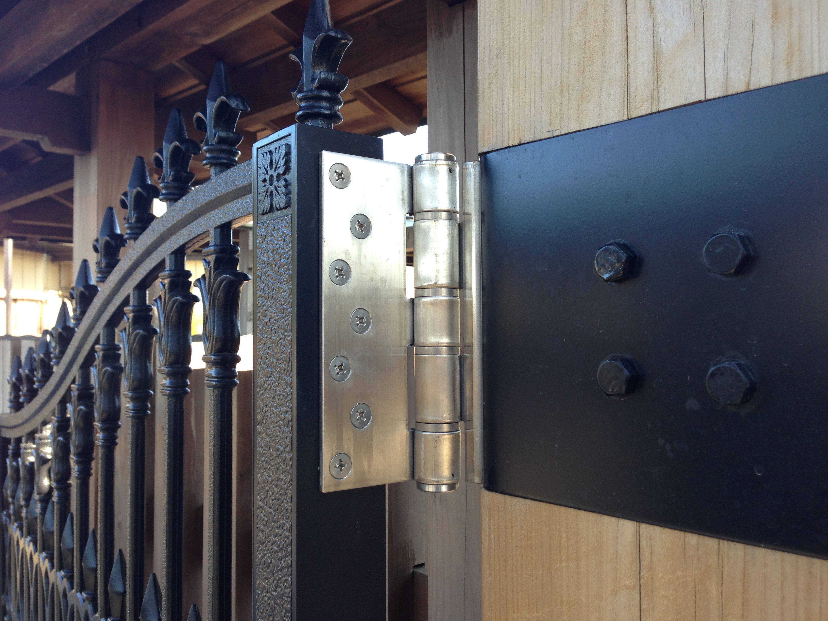 特注の重量丁番。 独特の鋳物肌が高級感を感じさせます。黒色塗装仕上です。