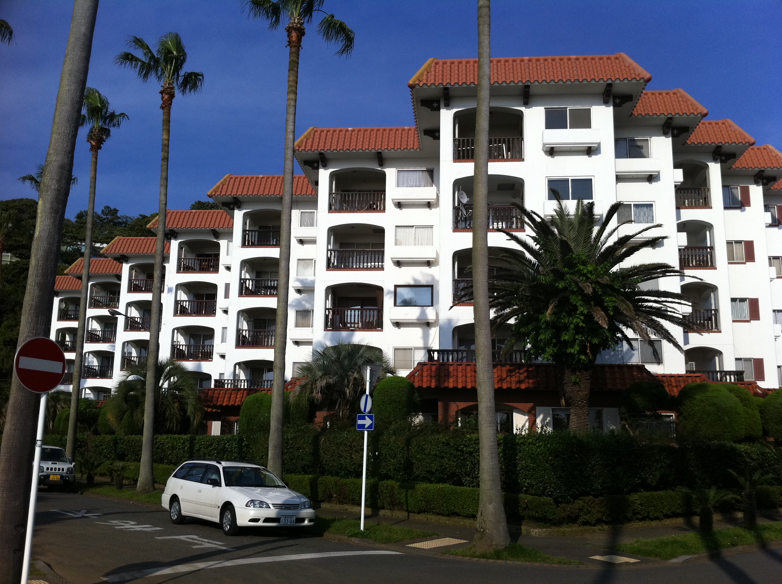 海、真正面の高級リゾート。建物だけでなく、もう周辺地域の雰囲気から、気分はまさに「地中海」。ヤシの高木が生い茂り、ここだけは別世界のごとく独特の雰囲気があります。 ベランダ手摺の改修工事を承り、既成の木製手摺から、丈夫で安全なアルミ鋳物の手摺に交換させて頂きました。海、真正面のため、仕様は素晴らしい高耐久性を誇る「フッ素樹脂塗装」を採用させて頂きました。