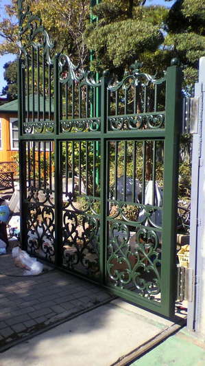 本格的な鋳物門扉を作るため、わざわざ鋳物の街、川口まで、ご担当者様にお尋ね頂きました。そのご期待に応えるため、川口でも屈指の木型師に原型を依頼し、弊社で鋳物を製作させて頂きました。取付の金物は特注の重量丁番を製作、上品な鋳物の風合いが高級感を醸し出します。